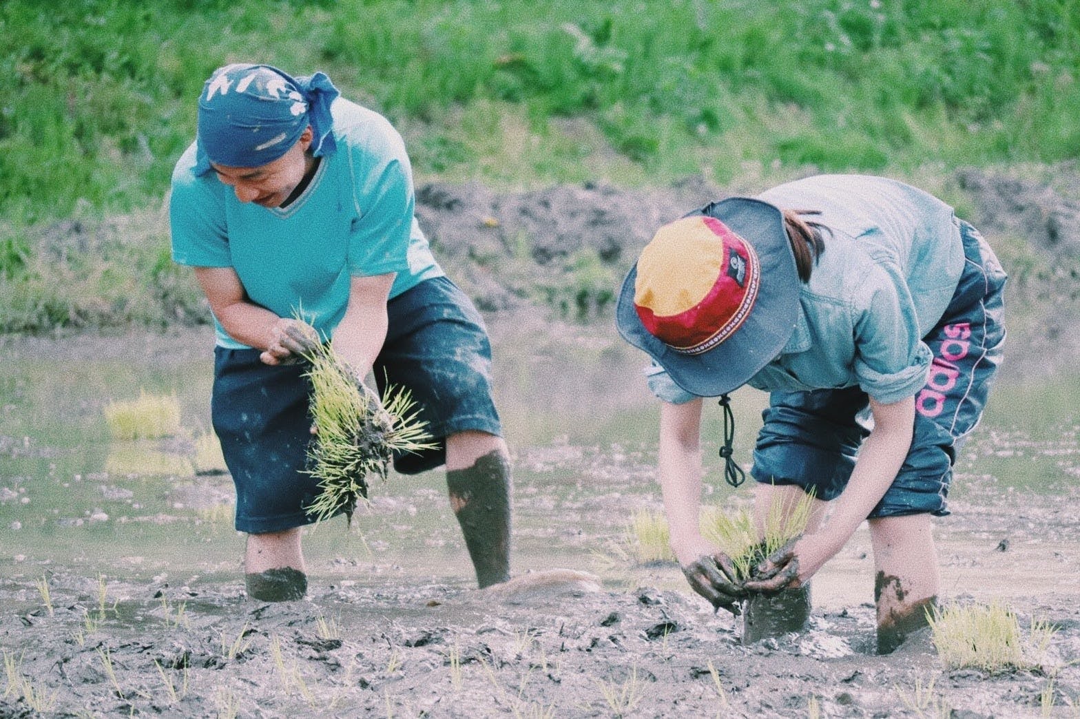 お米を手植え中