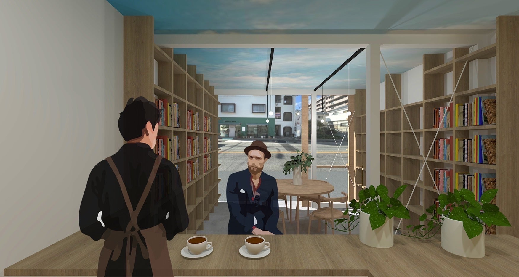 【改装後イメージ】1階ブックカフェスペース