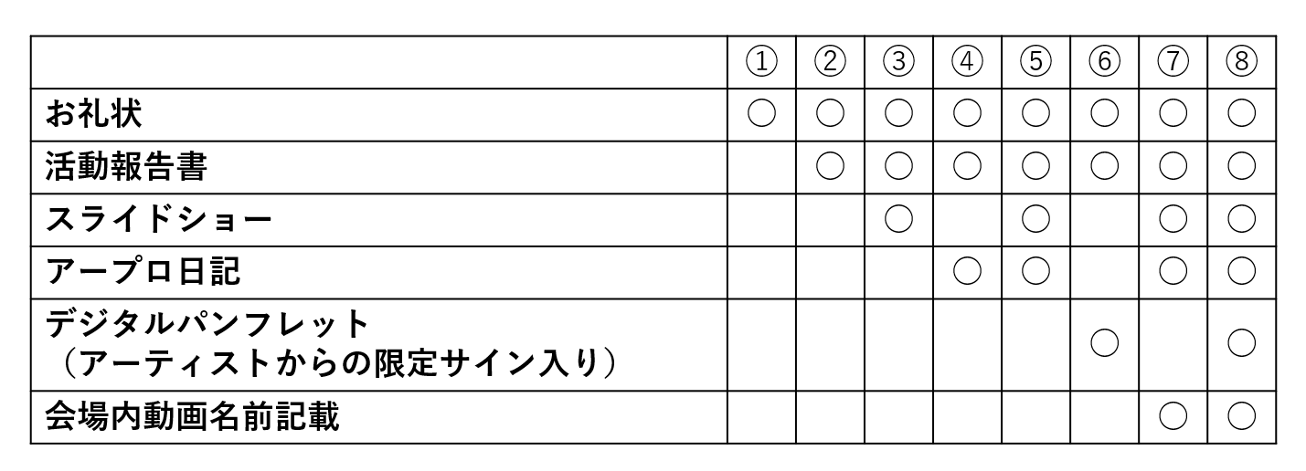 →ライブの思い出が詰まったパンフレットです。なんと出演アーティスト両組(The Cheserasera /KALMA )からのサイン付き!他にはない超贅沢なリターン内容になっています。pdfをダウンロードして、印刷すればOK!