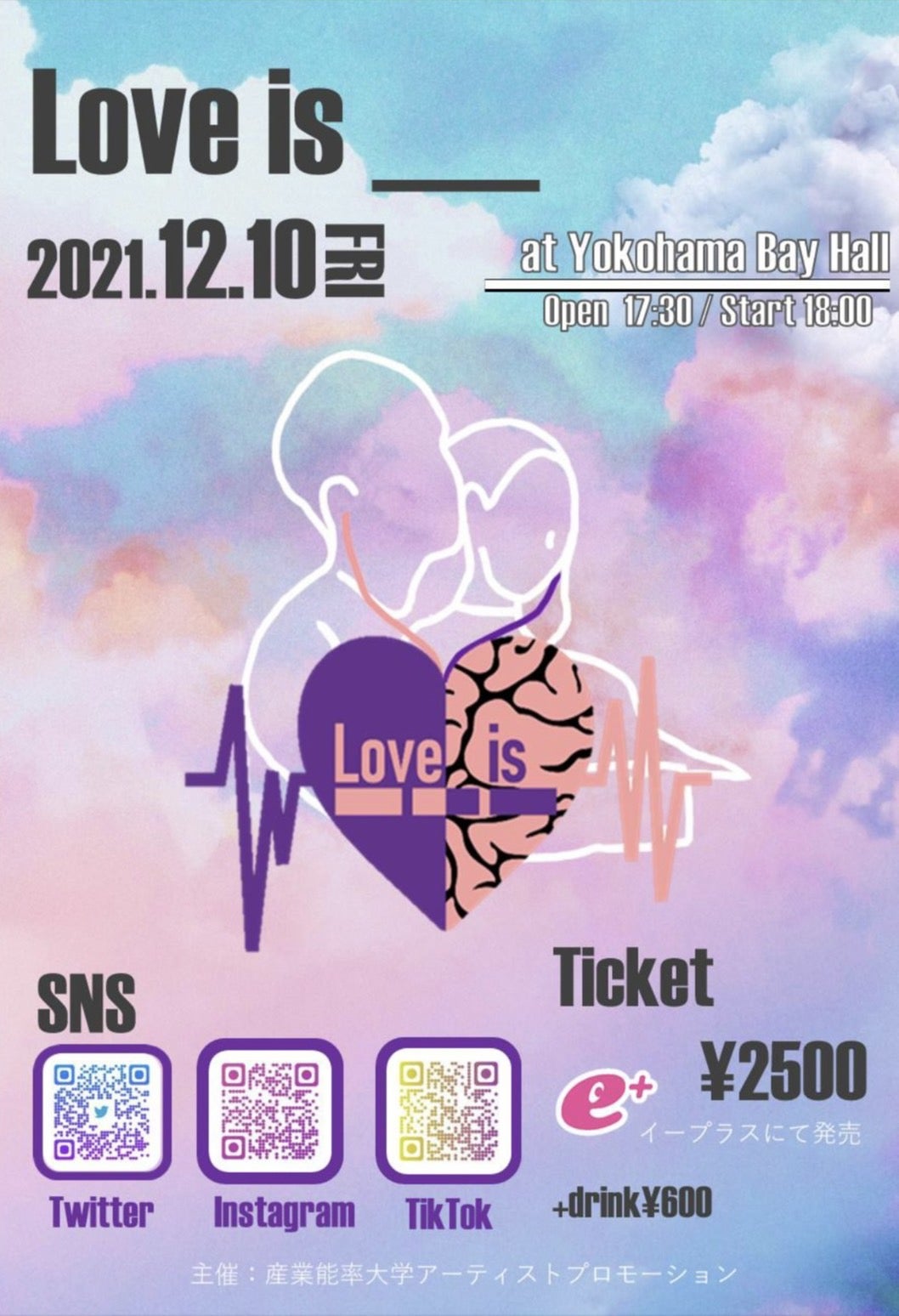 今年のライブタイトルは「Love is ___ 」。12月10日(金)に、横浜ベイホールにて有観客ライブを行います。詳しくは、以下のライブ概要をご覧ください。