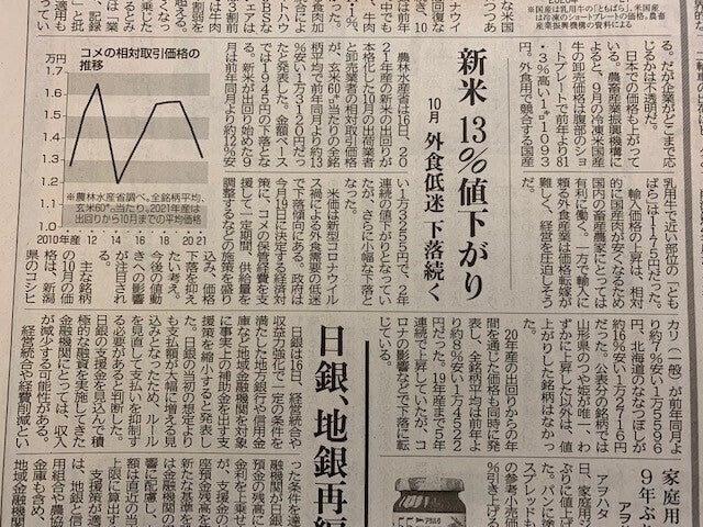 米価が13%値下がりとありました。