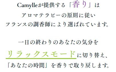 私たち『Camylle』は、上質なOFFを提供する為、【アロマセラピーの原理 】に基づき『自然の香り』をご提供します。