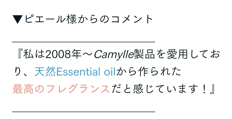 A:Camylle製品には動物性の成分や人口香料は一切使われていません。