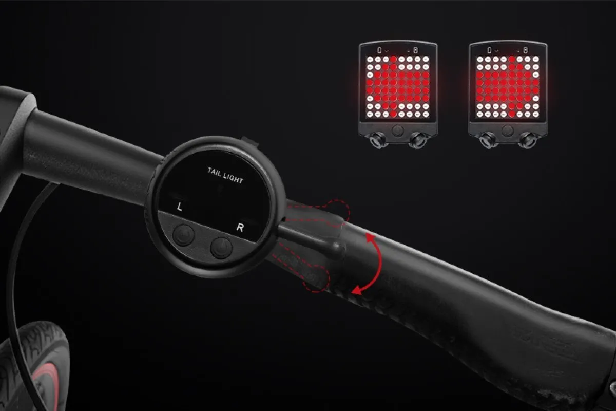 走行中に右左折のレバーを引くと、ワイヤレスでウィンカーライトが点灯し、