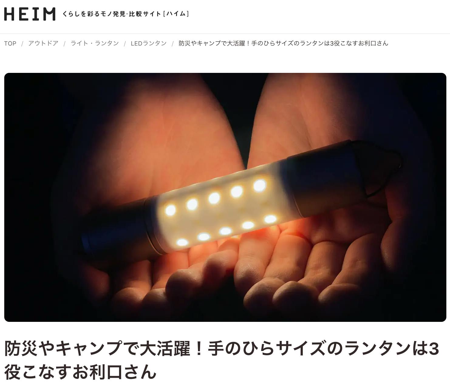 くらしを彩るモノ発見・比較サイト「HEIM(ハイム)」さんに、ピッコロランタンブラックの記事を掲載していただきました。