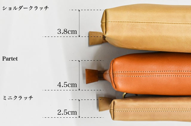 ショルダークラッチは普段仕事使いで持つクラッチバッグとしては大きいという意見から、よりスマートな印象になるサイズ感にダウン。