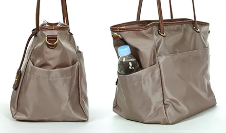 バッグの横に撥水性のホルダーがついてるので飲み物とかが取り出しやすいので、