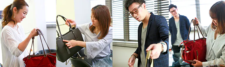 商品開発時に補強部分がさまざまな太さのバッグを試し、最適な太さをセレクトしました。