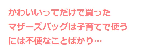今からママになる方に伝えたいのは、初期投資としてバッグにはお金をかけてもいいってことですかね。自分が気に入った可愛いバッグなら毎日持ち歩くたびにテンション上がるじゃないですか。