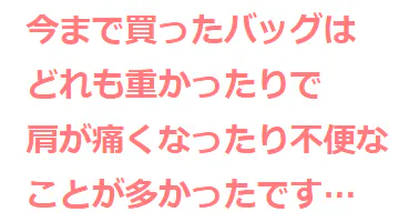 バッグ自体が重くてそれがすっごくストレスになってました・・・。