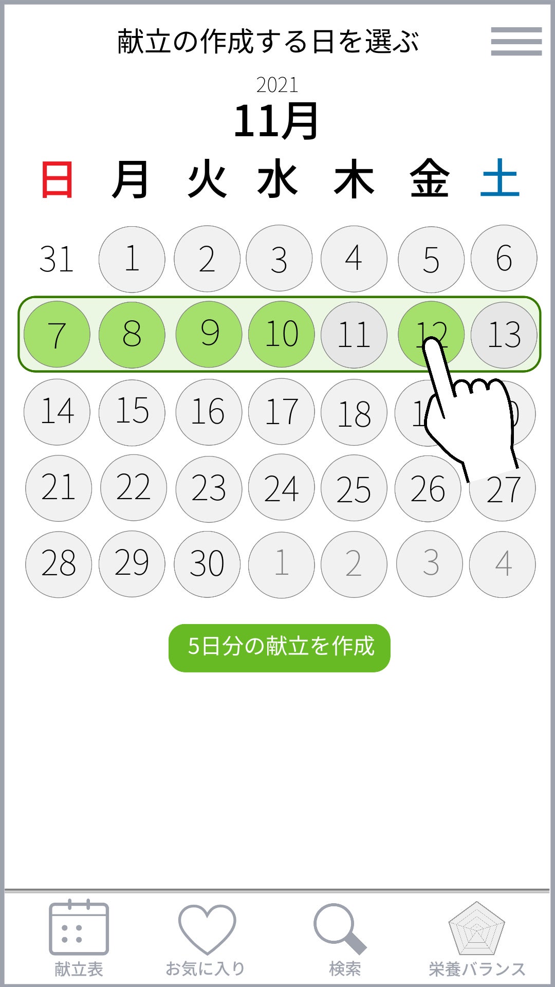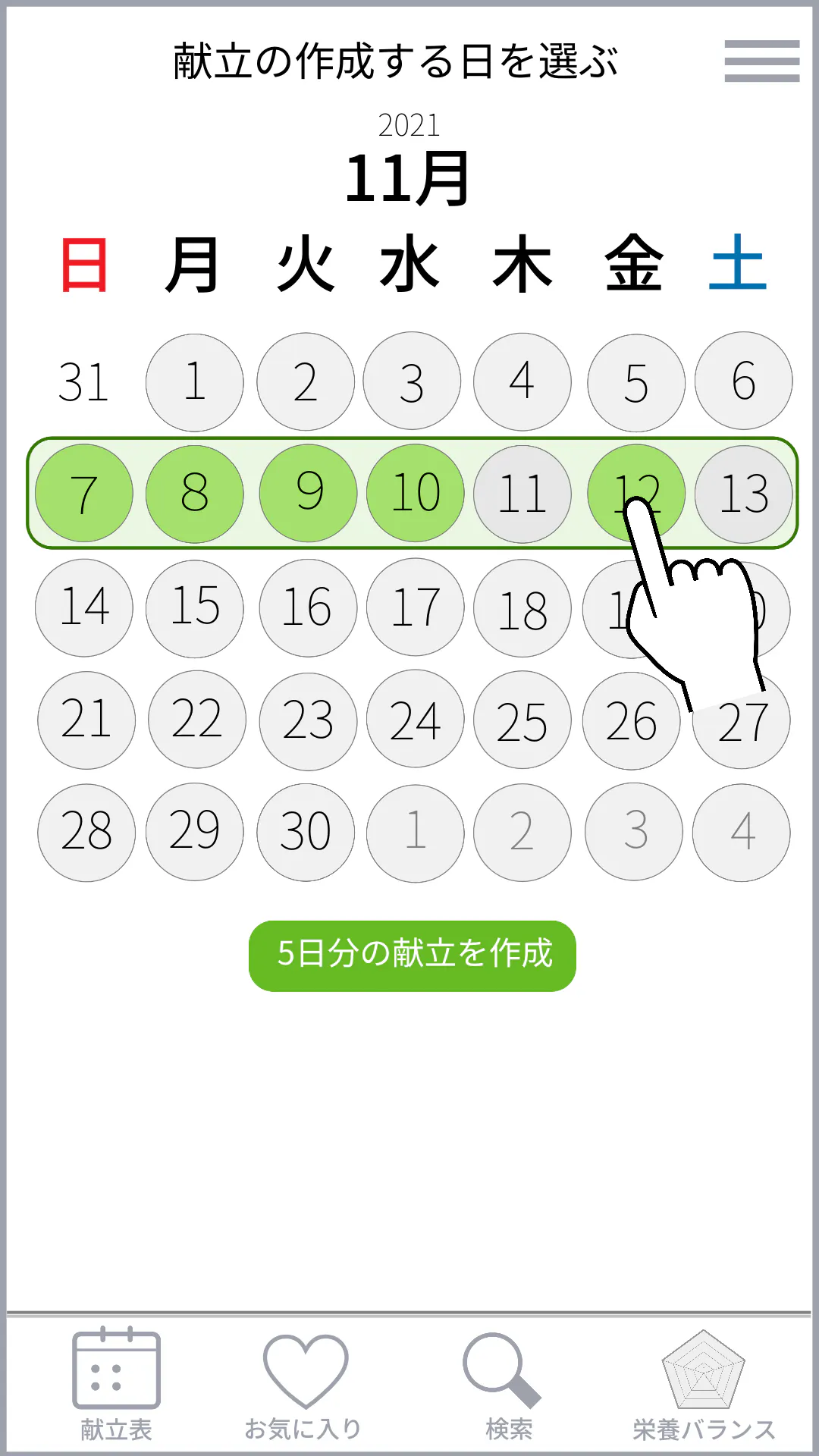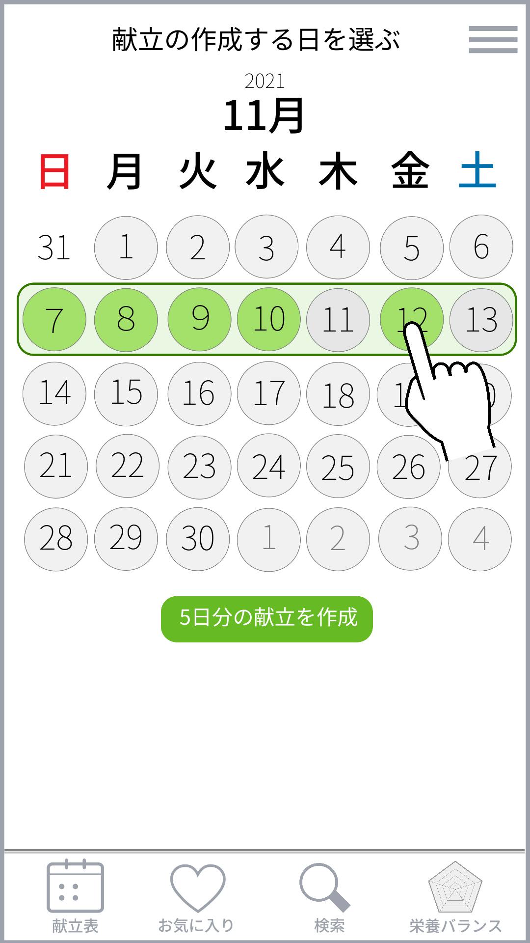 献立が必要な日を選択します