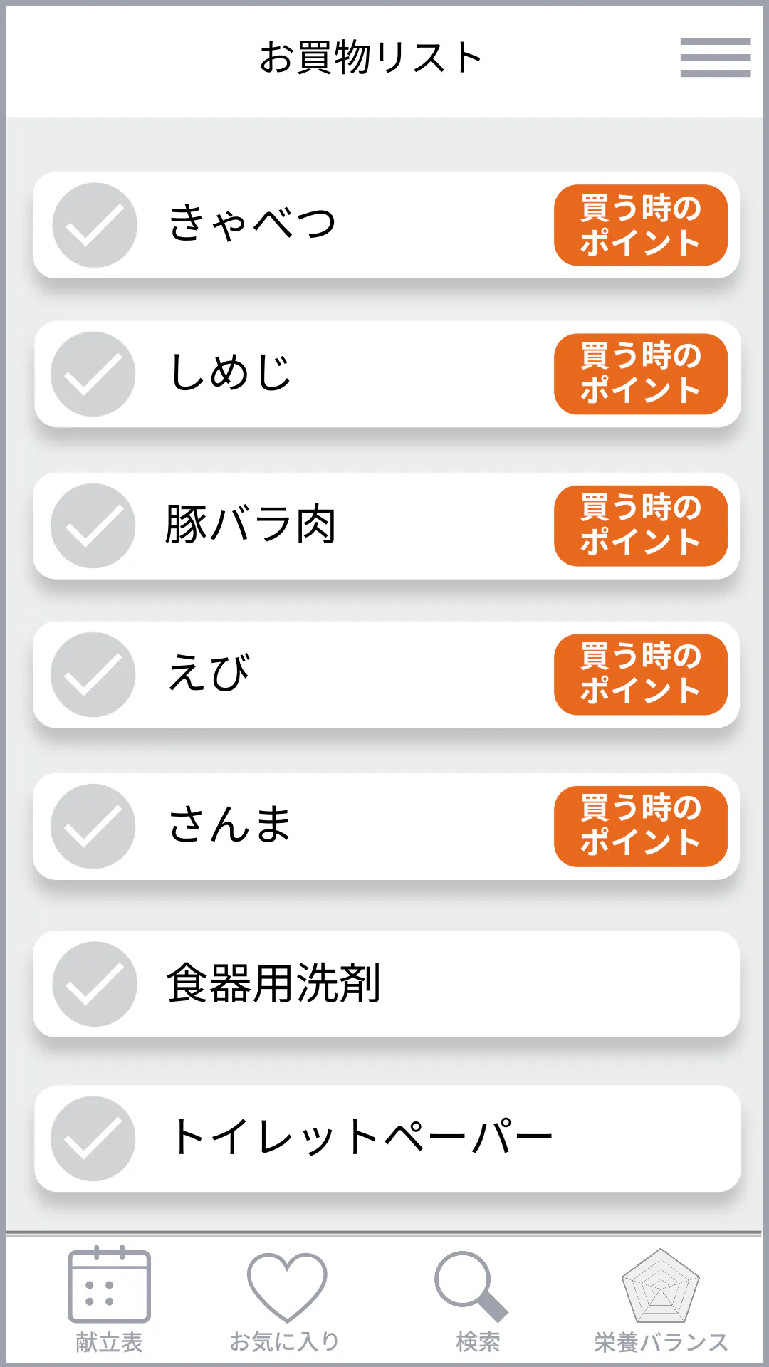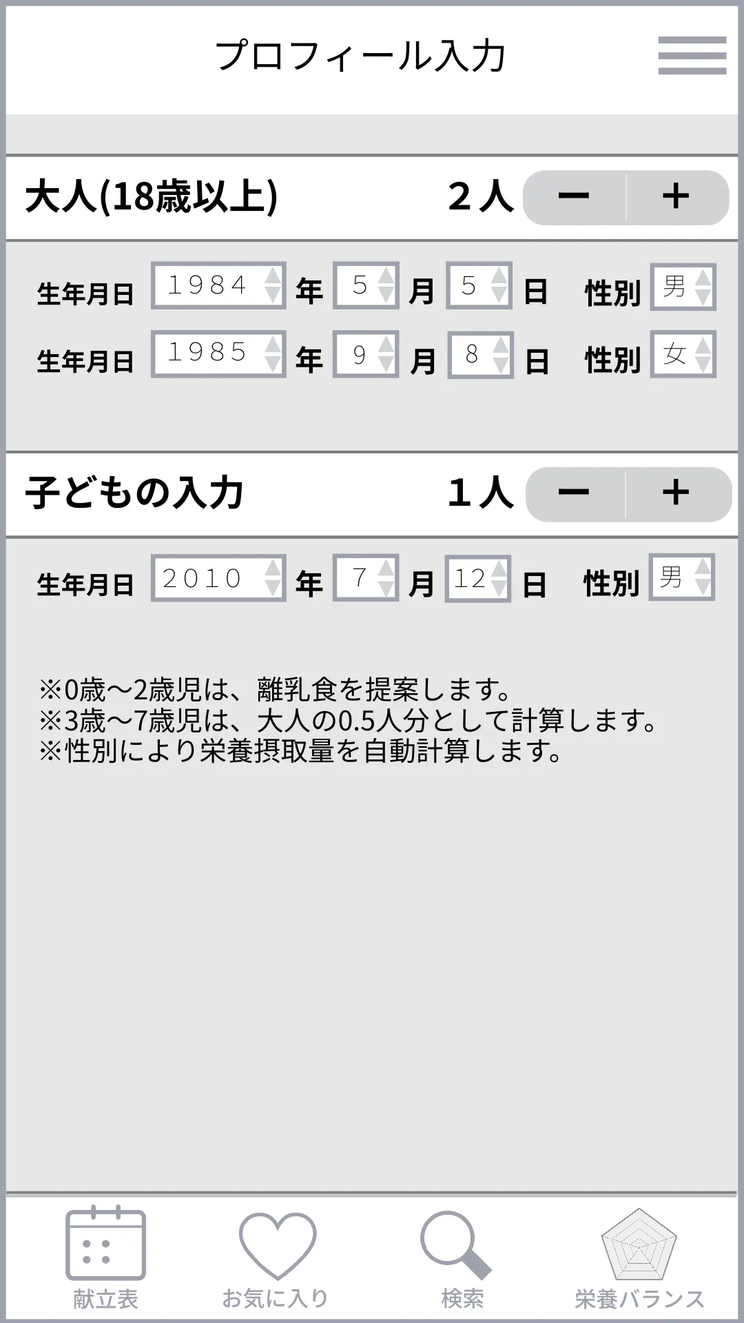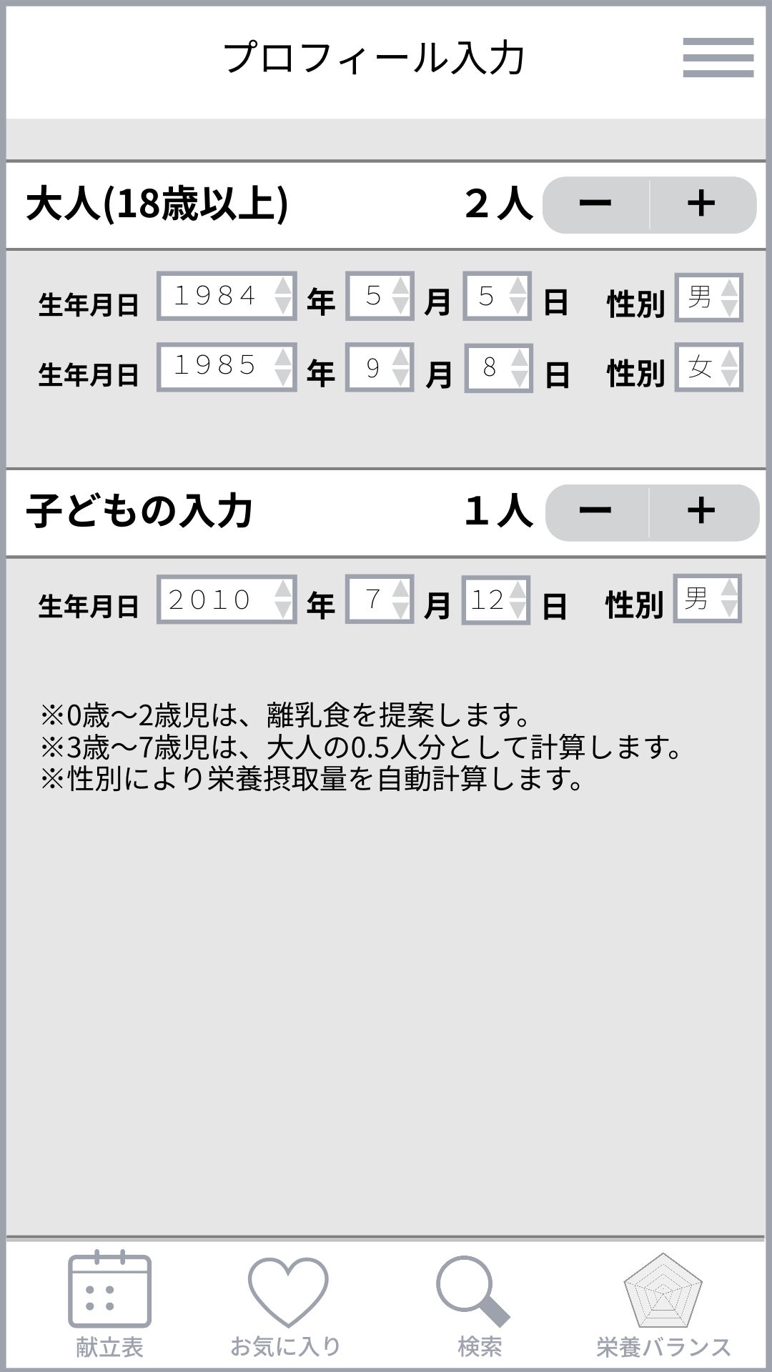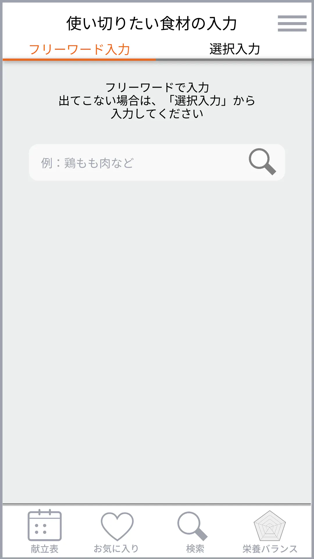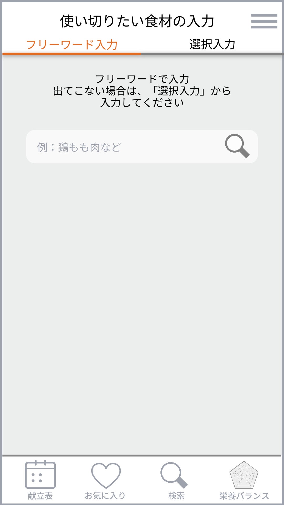 この画面は、献立を自動作成する際に毎回表示されます。