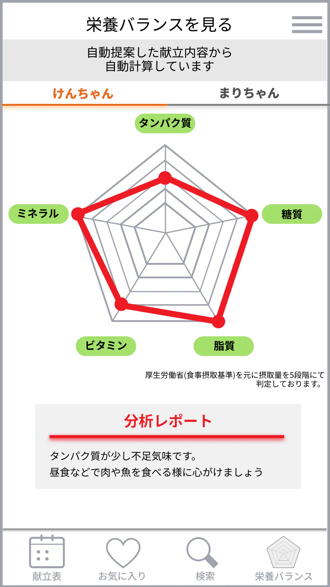疑似AIが提案した献立でも、実際の栄養バランスは気になると思います。