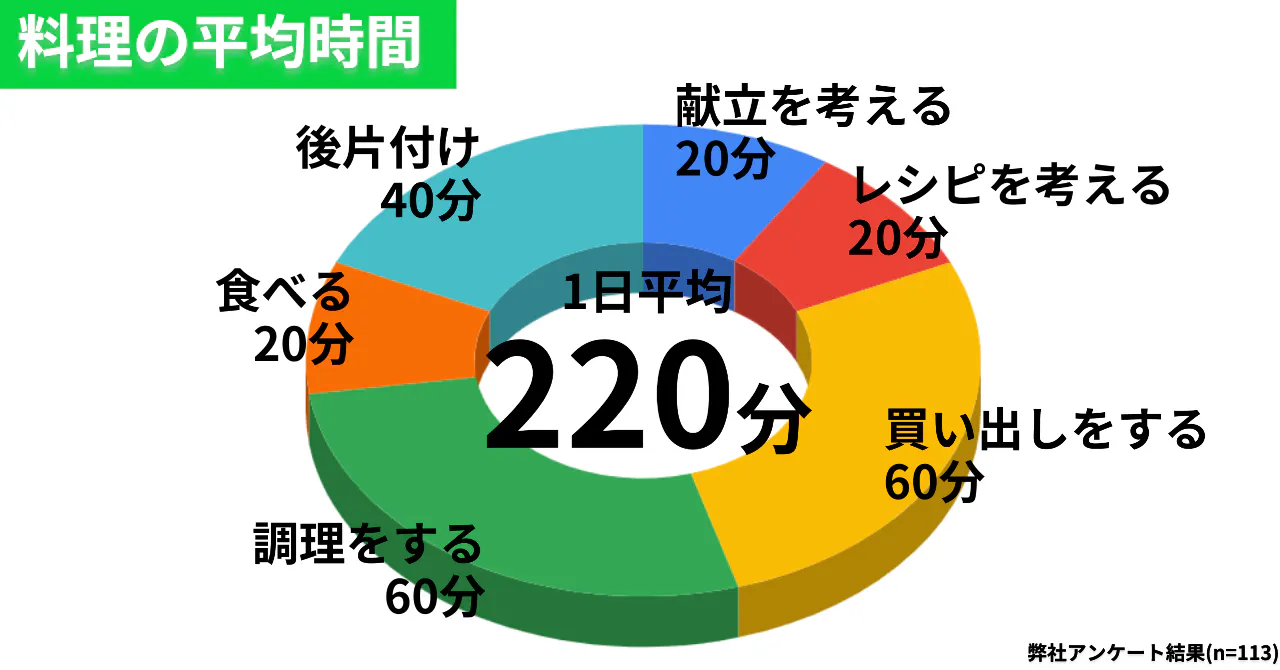 1日の料理に使う時間が減り、お母さんの負担が軽減され、他の事に時間を使える様になること。