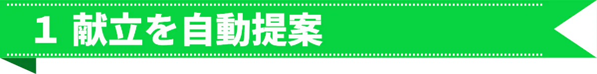 あとは、疑似AI(弊社独自のアルゴリズム)が1週間の献立を自動で提案します。