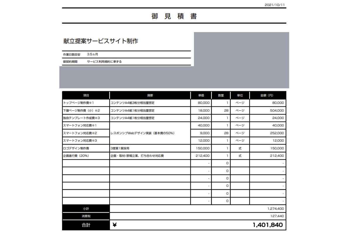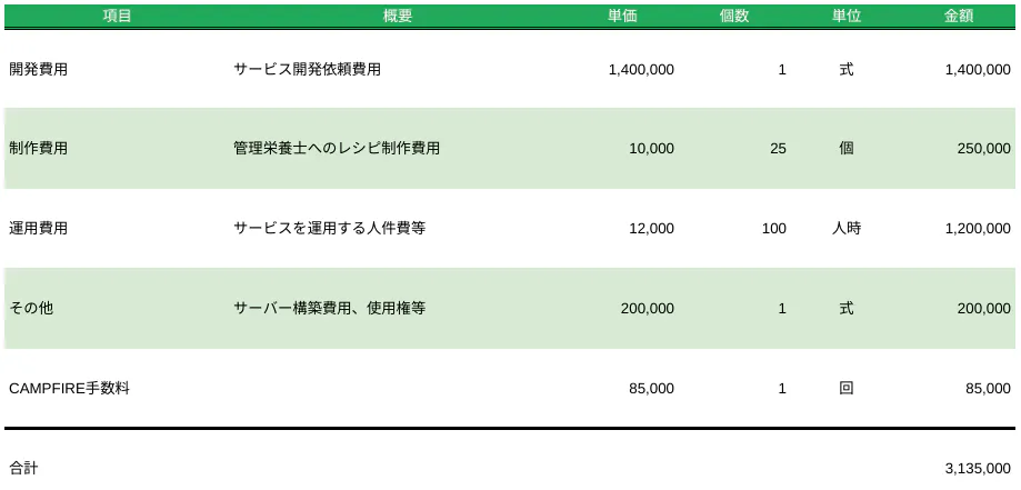 以下本サービス開発費用でございます。