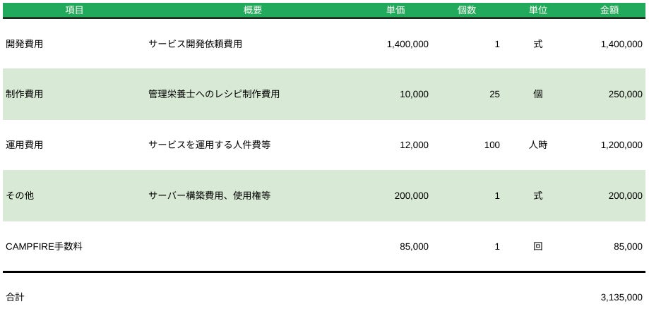 今回はじめての掲載となるため、目標設定金額は低く設定しております事をご理解いただけますと幸いでございます。