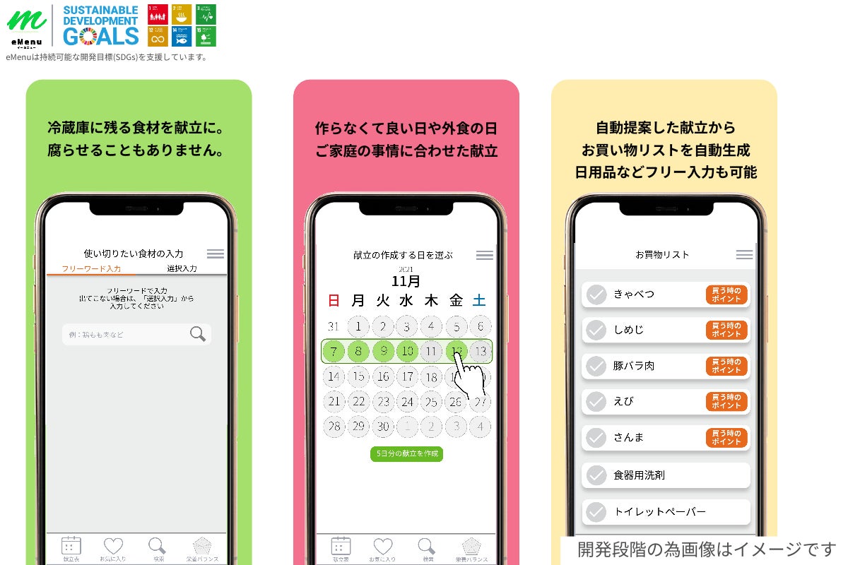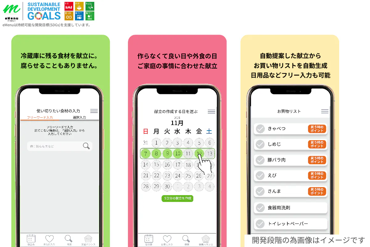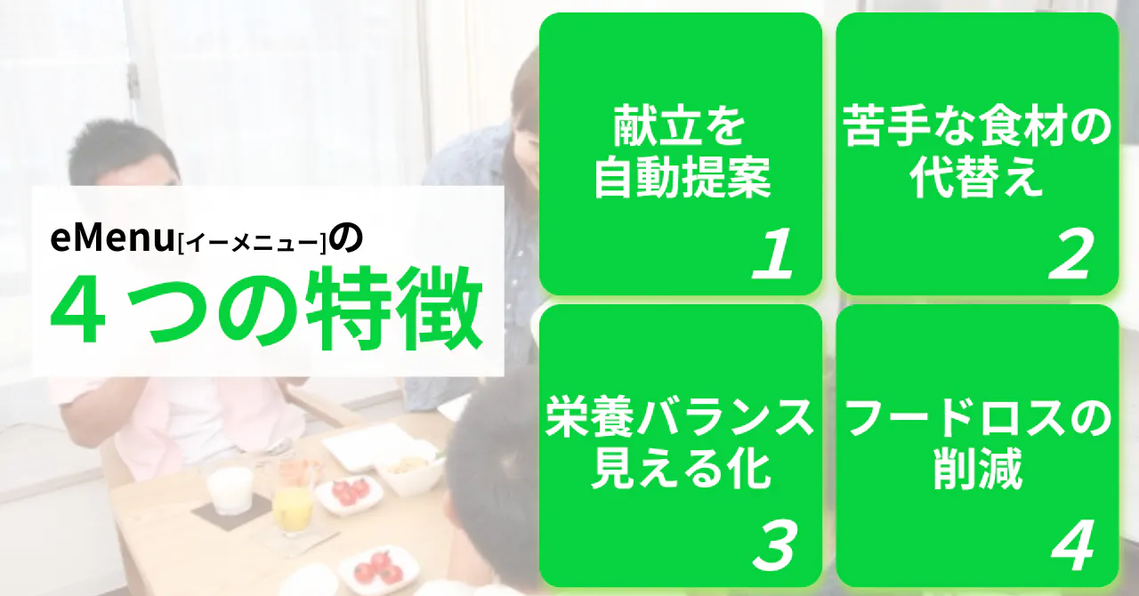 eMenuでは、1週間の献立を立てる際に、食材を使い切る事を前提としたプログラムを導入しています。