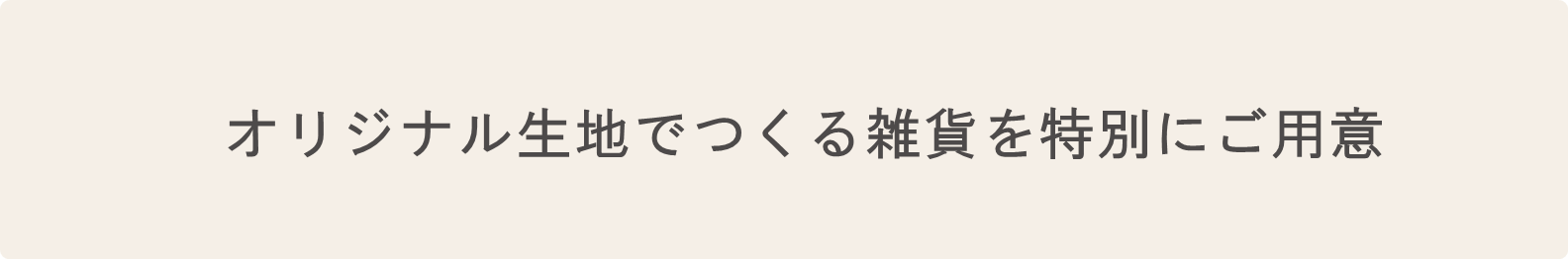 お届けする雑貨も、すべてオリジナルの生地を使用しています。
