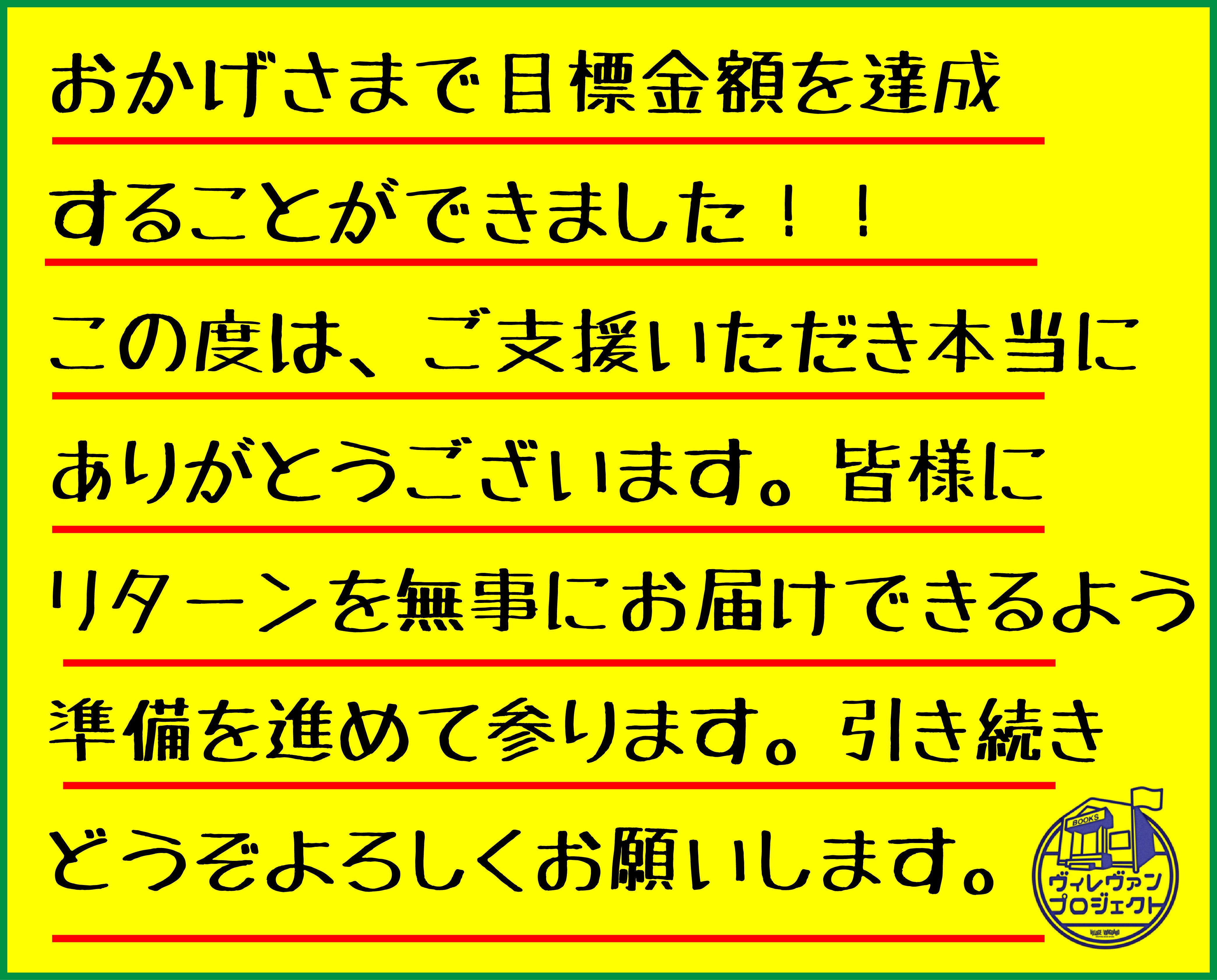 イラストレーター『あめのじゃく』初の画集制作プロジェクトプロジェクトオーナーのヴィレッジヴァンガードです。この度3月31日をもちまして、イラストレーター『あめのじゃく』画集制作プロジェクトは無事に目標金額を達成し、画集制作を進行させていただける運びとなりました。ご支援いただいた皆様、長期間見守って下さり誠にありがとうございました。また、様々な形で応援、ご支援いただいた皆様、サイトを訪問しご覧いただいた皆様、本当にありがとうございました。重ねて感謝申し上げます。現在、イラストレーター『あめのじゃく』と共に、皆様にお届けする画集とグッズを制作しております。ご期待に応えられるよう、素敵な画集になるように努めて参ります。皆様のおかげで画集制作という夢を、ひとつ叶えたイラストレーター『あめのじゃく』の今後の活躍も是非見守っていただけますと幸いです。