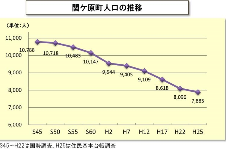 高い知名度を誇る関ケ原 > 減少傾向にある定住人口・交流人口