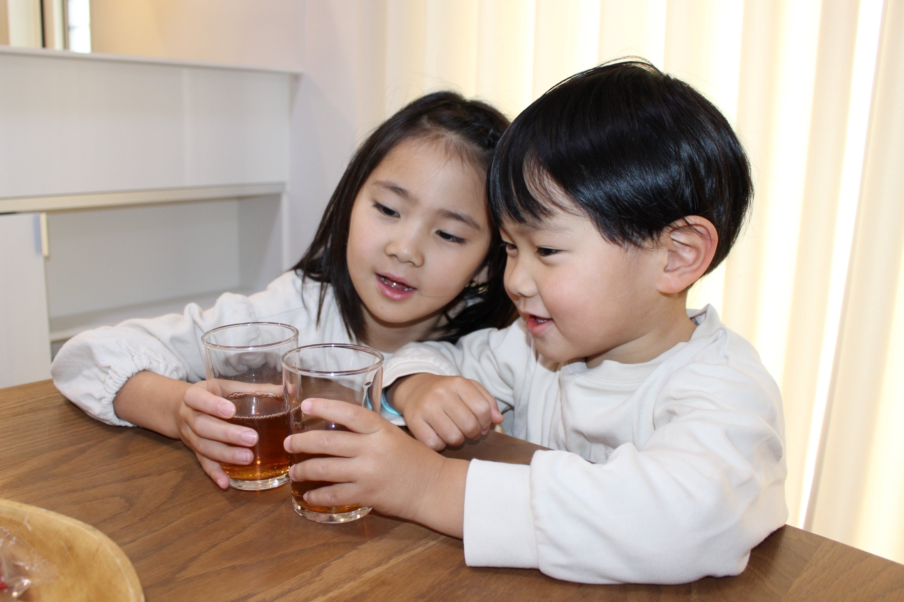 ① 沢山の子供たちに健康茶を飲んでほしい。