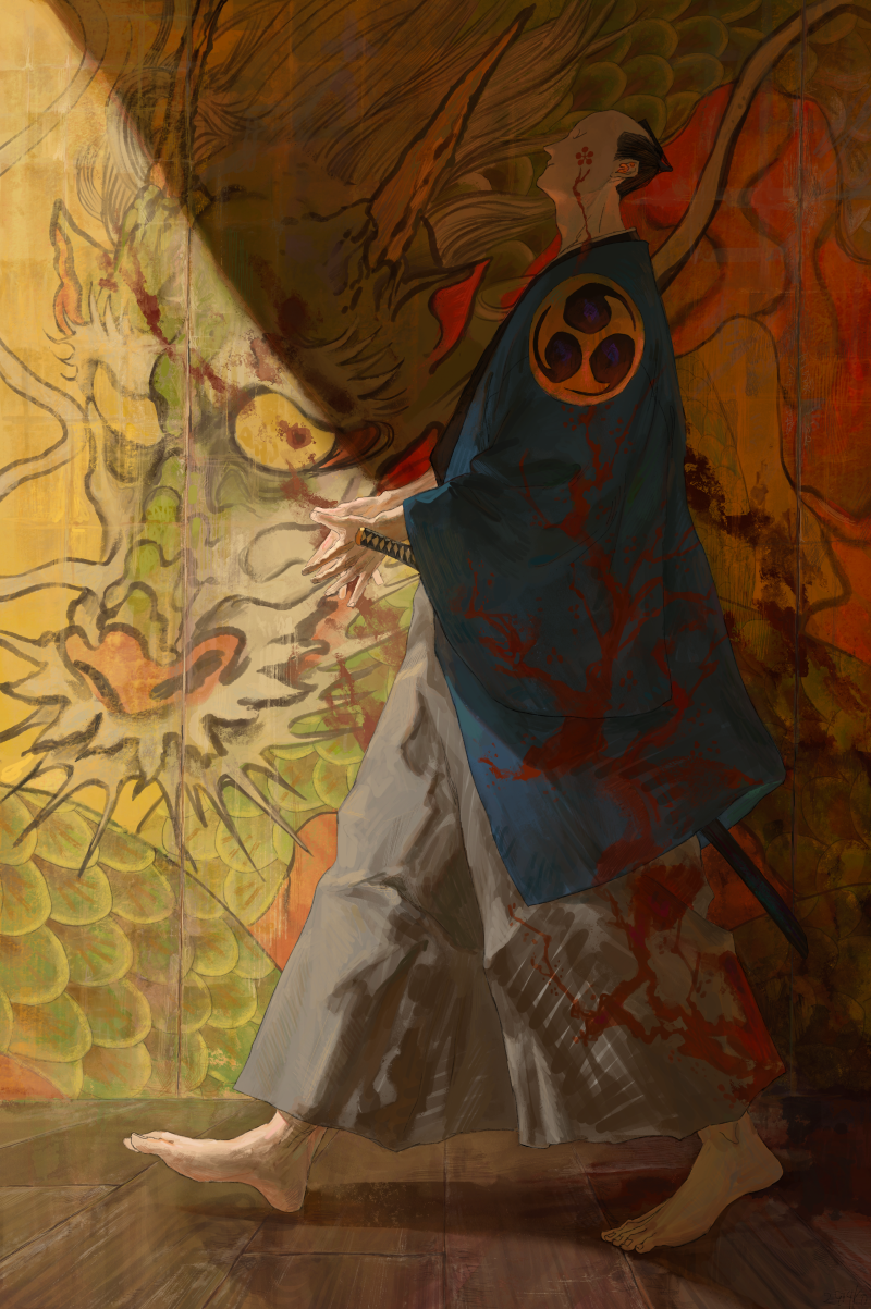 表紙の二人も、数ある世界観の内の一つである「武士が不老不死になっただけの話」に登場する人達で。この話は自分史上、二番目に出てきた世界観なので今回の画集の表紙として抜擢しました。 一番目のはまた別所で登場します。