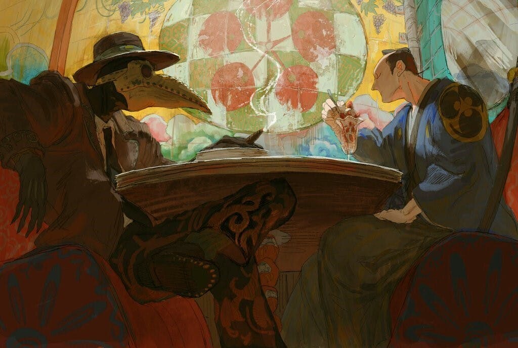 イラストレーター『おく』:Twitter上で盛んに二次創作していた時分は高校生でして。当時の自分には「大学生になったら一次創作にチャレンジしてみよう」という考えが漠然とあったそうです。で、大学生になったので一次創作を描き始め、投稿するようになった次第です。 一浪していたので高校と大学の間に一年ほど+αな期間がありましたが。本来なら2019年春に一次創作活動始動の予定が浪人確定故 一年ズレて2020年春になりました。 ただこの一年間は非常に重要な期間であったと感じています。 その期間で色使いや感性などの、今現在の自分に直結する画風や作風が 確立されていった気がします。 浪人生活に伴い住環境が変化したので、用いるペイントソフトが高校時のと変更されたりなんだりあって。新たなペイントソフトで色々模索したり当時ハマった作品の影響を受けたりなんだりして画風や技法が変わっていき、現在に至ります。ちなみに所謂「侍モノ」に傾倒してかつ絵柄(特に人体の描き方)が現在のような形になった最もたるきっかけは永福一成先生原作/松本大洋先生画『竹光侍』です。初めて読んだのが2020年2月末か3月頭だった気がします。 浪人時代末期ですね。この短期間、この一作品で何もかも変わってしまった。 人生何が起こるか分からないですね。本当に。
