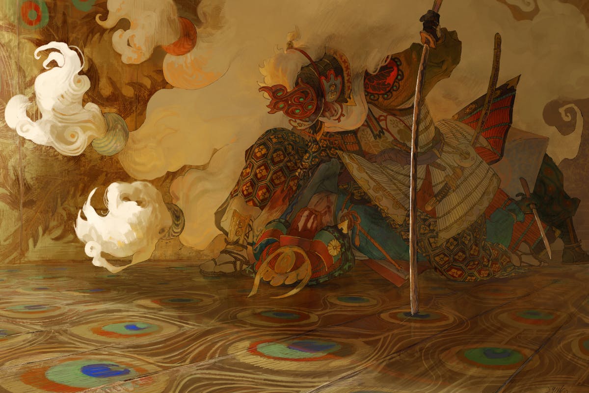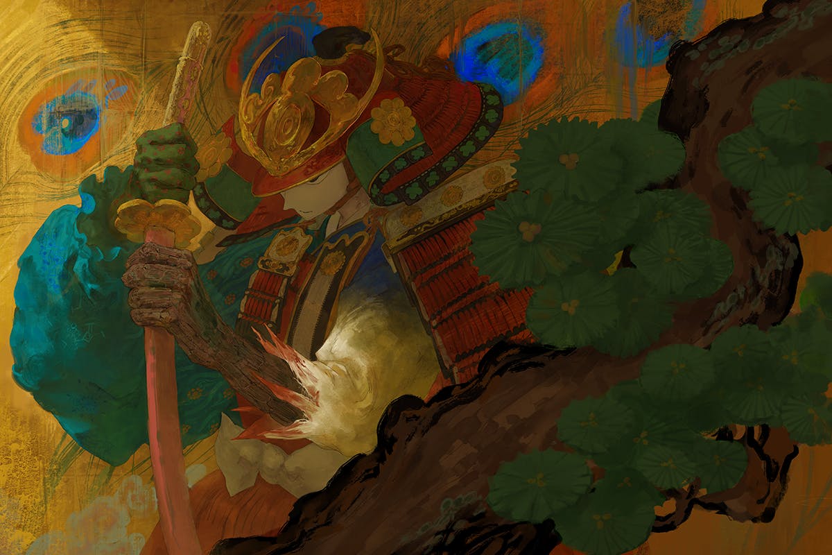 Q:『和』や『日本』が強く表れている力強い作品を今回の画集制作プロジェクト!!でご用意いただきました。描こうと思い立ってもすぐに表現できるものではない色使いの複雑さや呼吸を感じるのですが 何かルーツになるご自身の境遇や環境がありましたら教えていただきたいです。