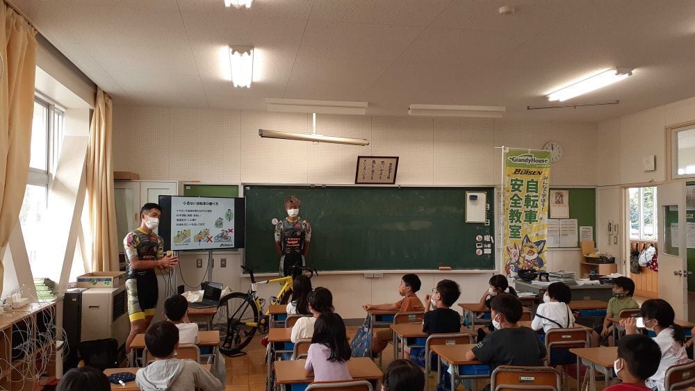 毎年行っている『Grandy Houseプレゼンツ自転車安全教室』では、通学時の自転車利用率が高い小中学生、高校生を中心に自転車を乗る際のマナーやルールを選手自身が説明し、子どもたちの事故やケガのない自転車利用を目指しています。