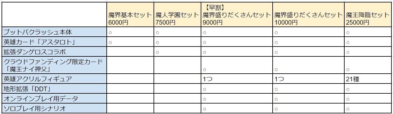 ゲームマーケット2021秋での販売予定価格は、ブットバクラッシュ本体が5500円、拡張ダンゲロスコラボが1500円となっております。クラウドファンディングは送料込みの価格であるため、ゲームマーケットでの販売価格より多少高くなっています。そのため、本クラウドファンディングでお申し込み頂いた方で、ゲームマーケットでの受け取りを希望する方には、現地にてアクリルフィギュア1種をおまけでお付けいたします(種類はランダムを予定)。当日、受け取りができなかった方にはゲムマ後に郵送します。