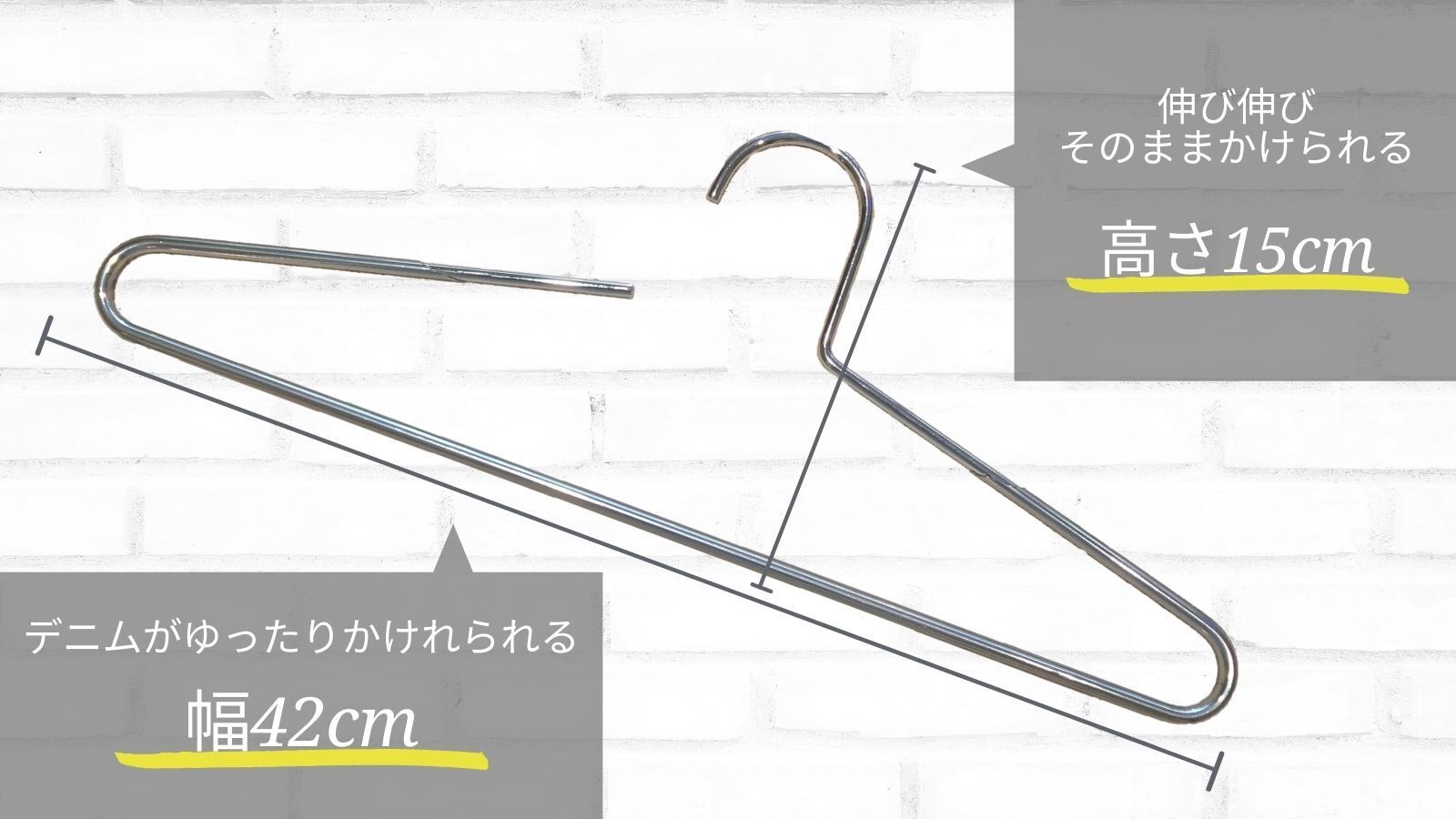 デニムの収納困ってませんか?ハンガーの高さを抑えてのびのび、幅を長くすることでゆったりとお気に入りのデニムをかけられます。
