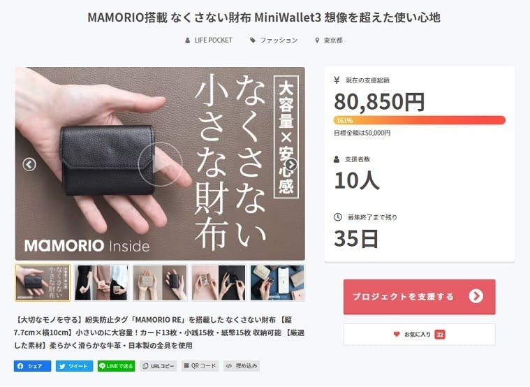 ご賛同とご支援を頂きました皆様の想いを胸に、「マモリオ搭載なくさない小さな財布 “Mini Wallet shrink”」を盛り上げていきたいと思います。
