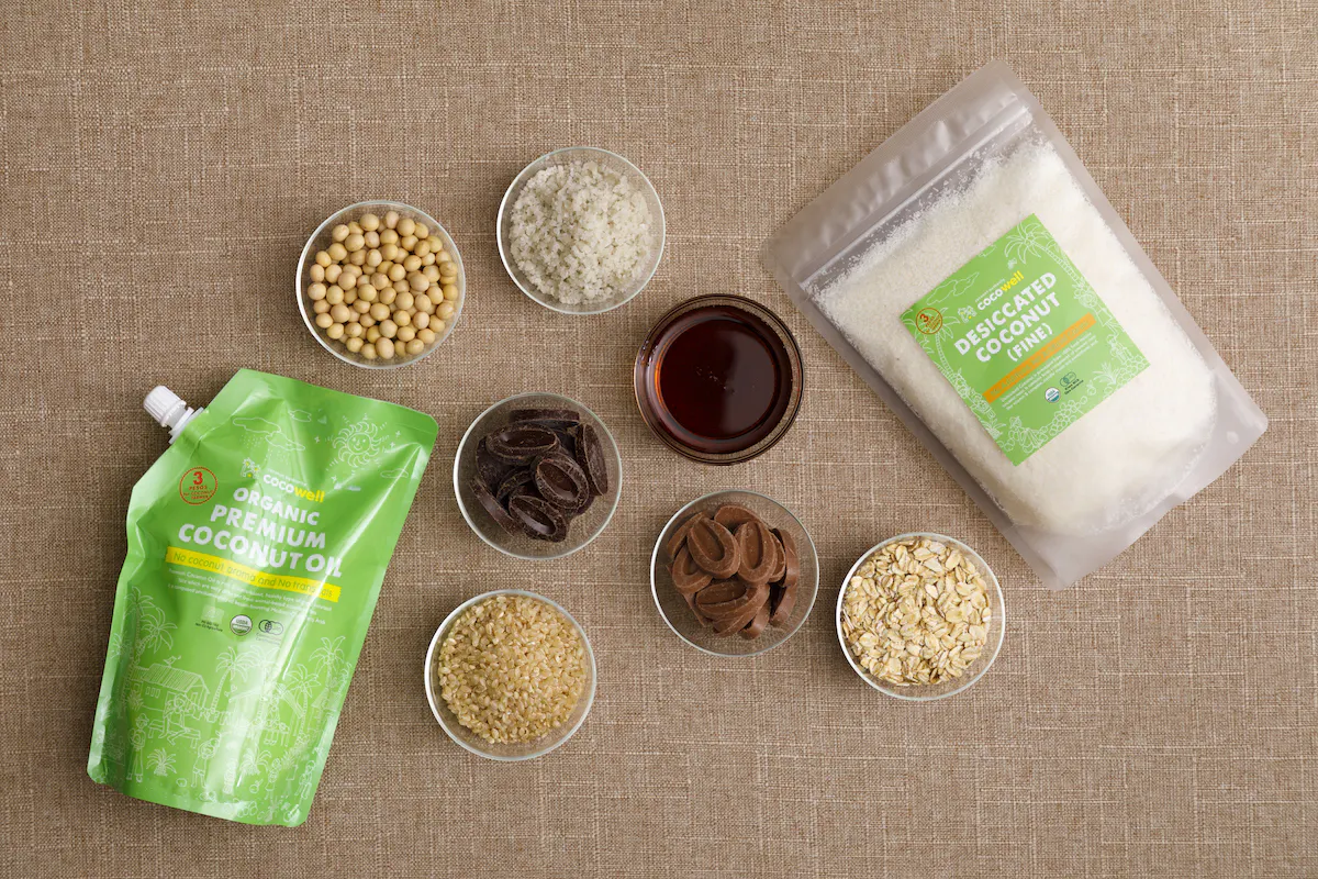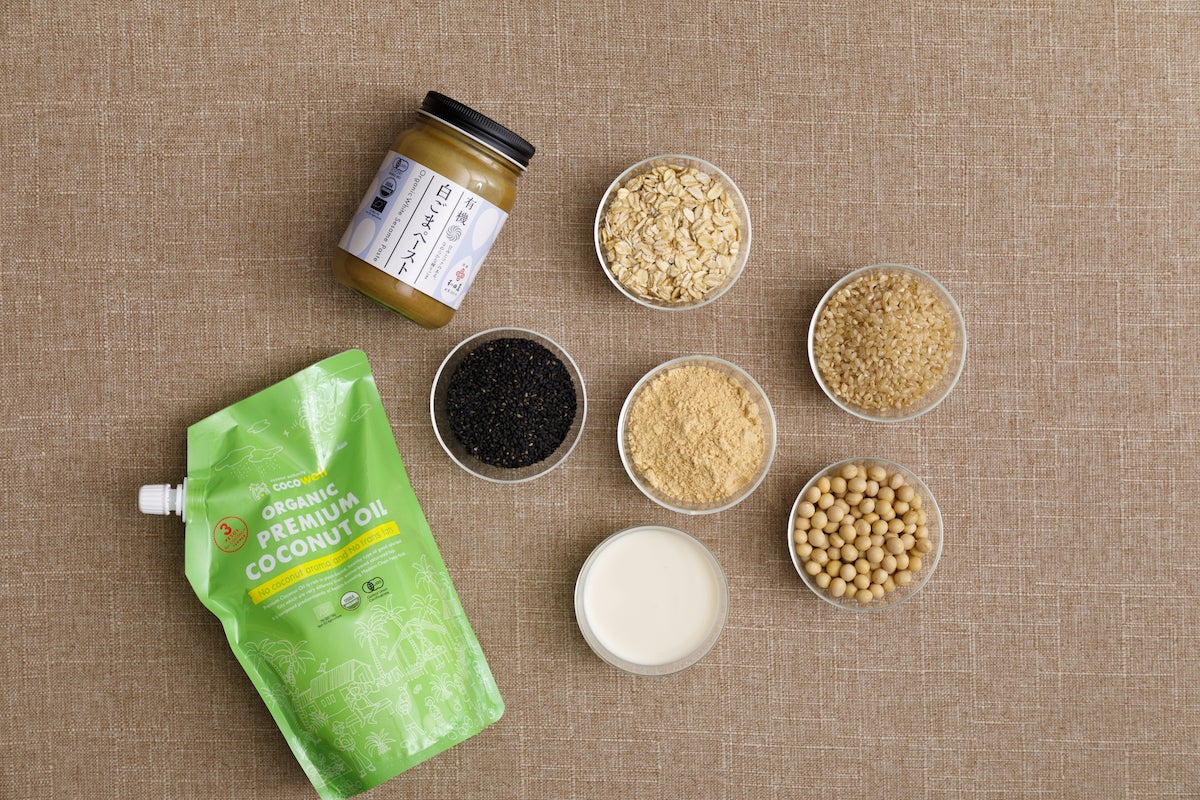 有機オ ートミール・有機 ココナッツオイル・有機焙煎玄米粉・おからパウダーを主に有機メープルシロップ・有機黒ごま・有機黄な粉・有機 豆乳・有機 ゴマペーストを使用しています。小さなお子様から老若男女問わず召し上がって頂けます。甘さ控えめなので、黄な粉の香りとごまの香ばしい香りがマッチする美味しさです。賞味期限3か月。直射日光が当たらない冷暗所で保管ください。開封後はなるべく早くお召し上がりください。
