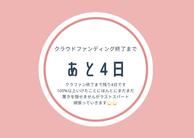 残り4日となりました!もっと他のみなさんにも知ってもらいたいので是非とも拡散、支援お願いします!!