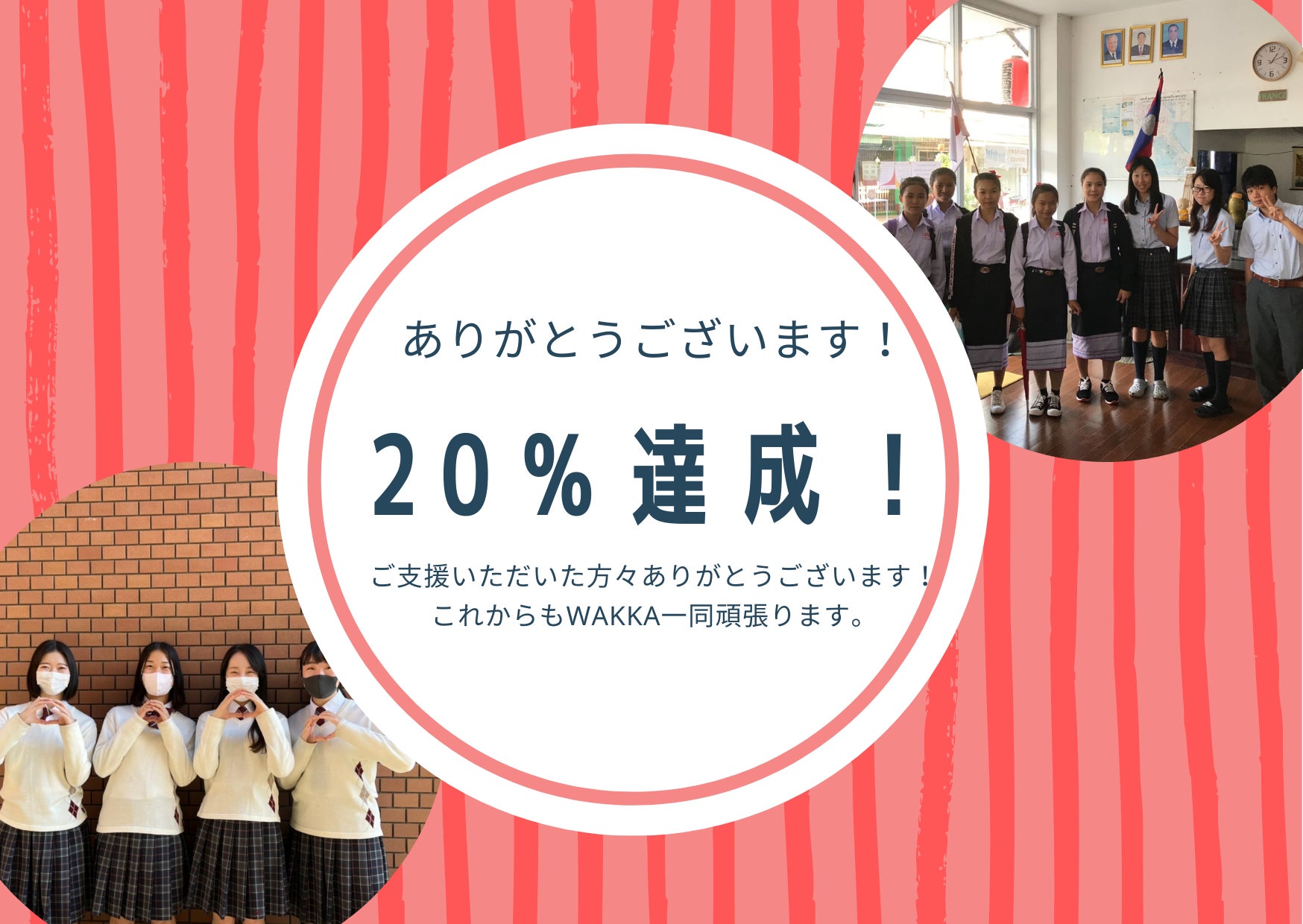 ご支援いただいた皆様、いつも応援してくださっている皆様、ありがとうございます!!WAKKAの活動であるクラウドファンディングが20%達成しました。