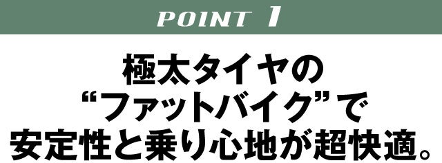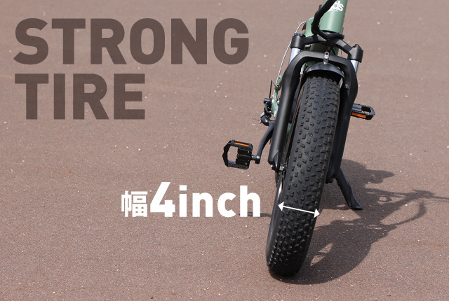 圧倒的な存在感を放つ幅4inch(約10cm)の極太タイヤが目を引きます。