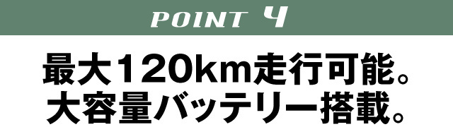 フル充電すれば最大120㎞も連続走行が可能です。