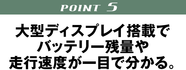 バッテリー残量や現在の走行速度や走行距離、アシストモードの状態が一目でわかります。
