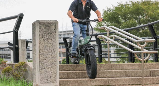 そのため傾斜の緩い階段程度なら自転車から降りなくてもサスペンションとタイヤが段差の衝撃を効率よく吸収し、バランスを崩しにくい走行が可能(無理のない安全運転をお願いします) 。街中の段差による嫌な突き上げもかなり軽減されます。