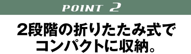 たった2段階で折りたためるので、セッティングや収納も素早くできます。