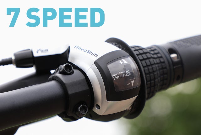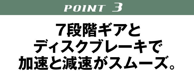 7段変速ギアがあれば高速走行でも漕ぐ力が減り、快適なサイクリングが楽しめます。