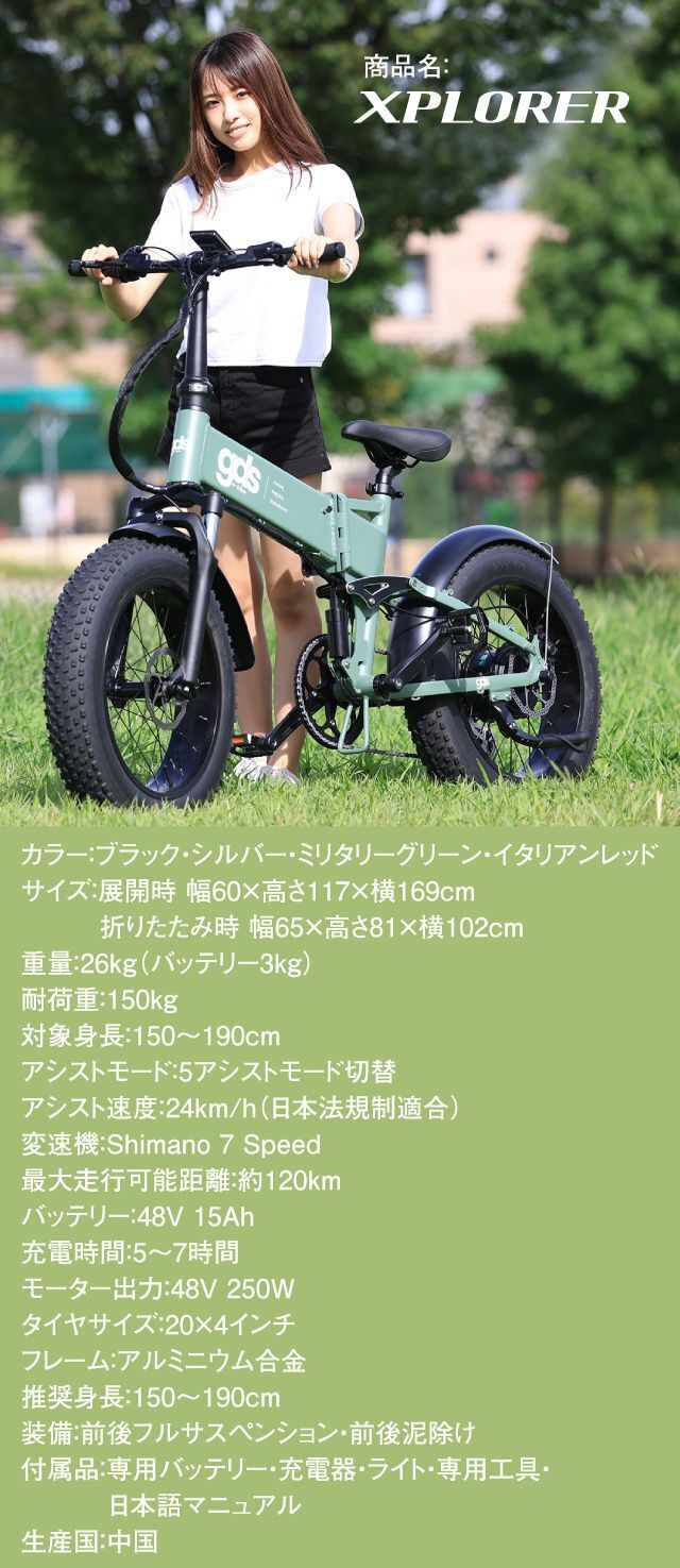 【XPLORER】は都会のアスファルトはもちろん、山道の悪路もパワフルに走行できるオフロード用の“ファットバイク”の電動アシスト自転車です。