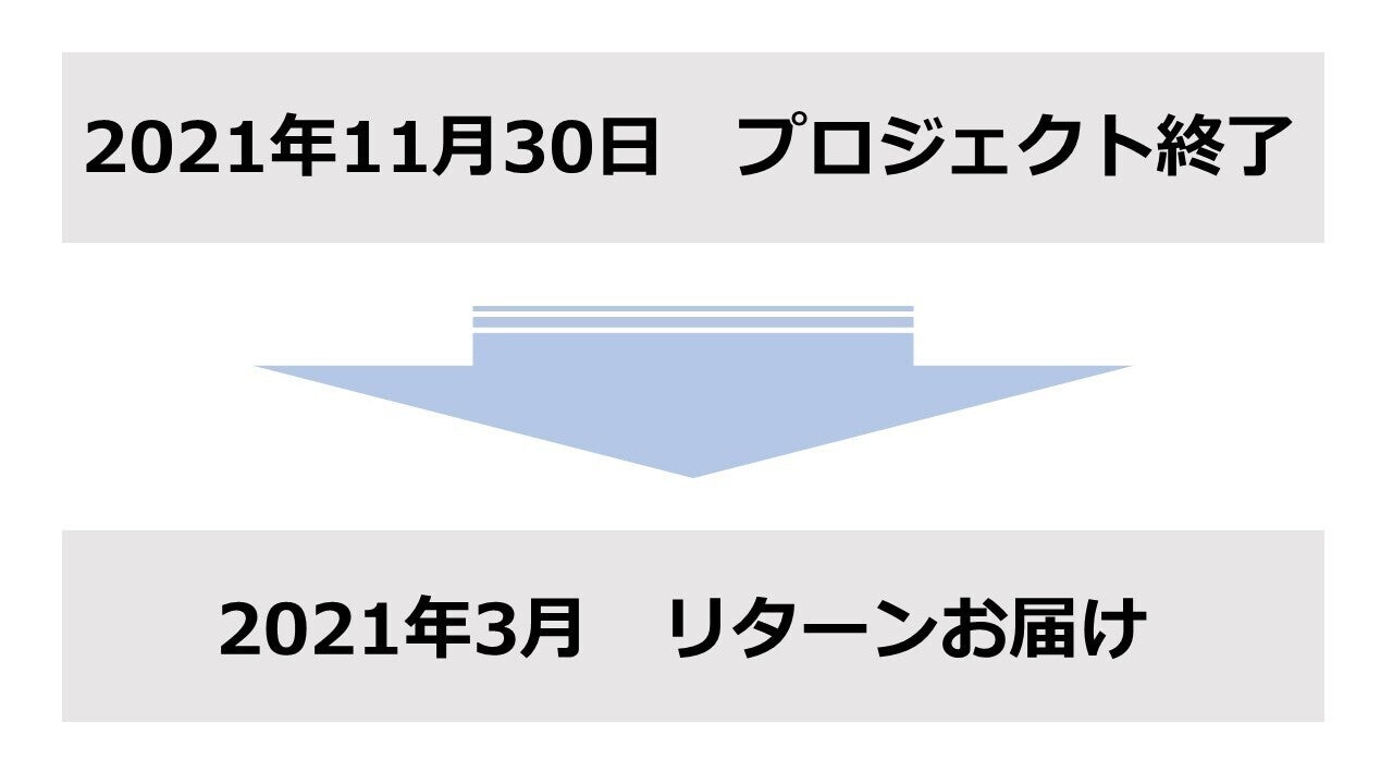 ※原則として、配送遅延に伴うご支援のキャンセルはできませんが、リターン配送予定月から6ヵ月を超えた場合には、希望者に限りキャンセルにて対応させていただきます。
