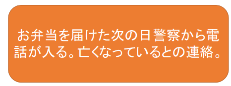 玄関先で座ったまま亡くなっていたということで、横にお弁当があったそうです。