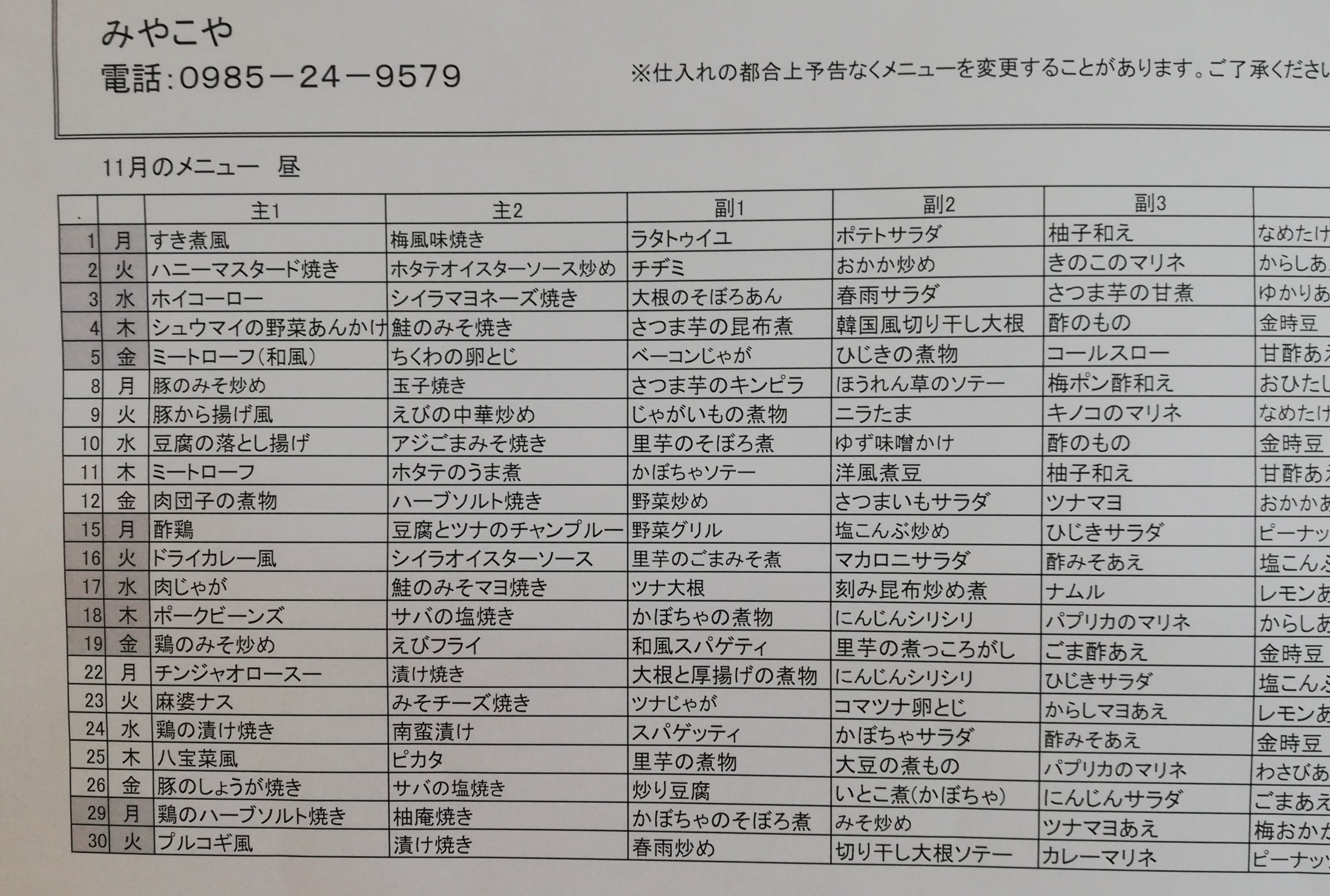 献立表が1か月分あると、一日に作るメニューの目安になりますので是非ご活用くださいね。