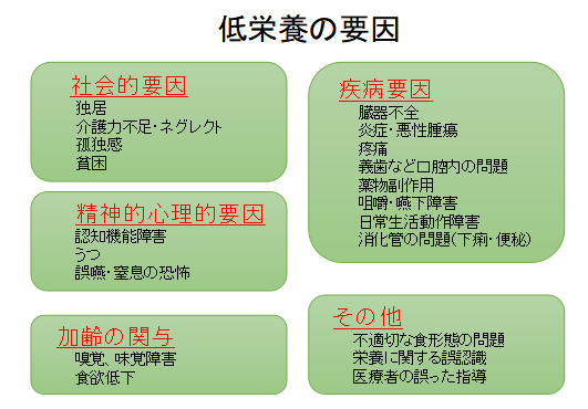 ここで低栄養のお話を書いてみます。低栄養と言うのは 何らかの理由で食事が十分に摂れず栄養状態が悪くなることを言います。