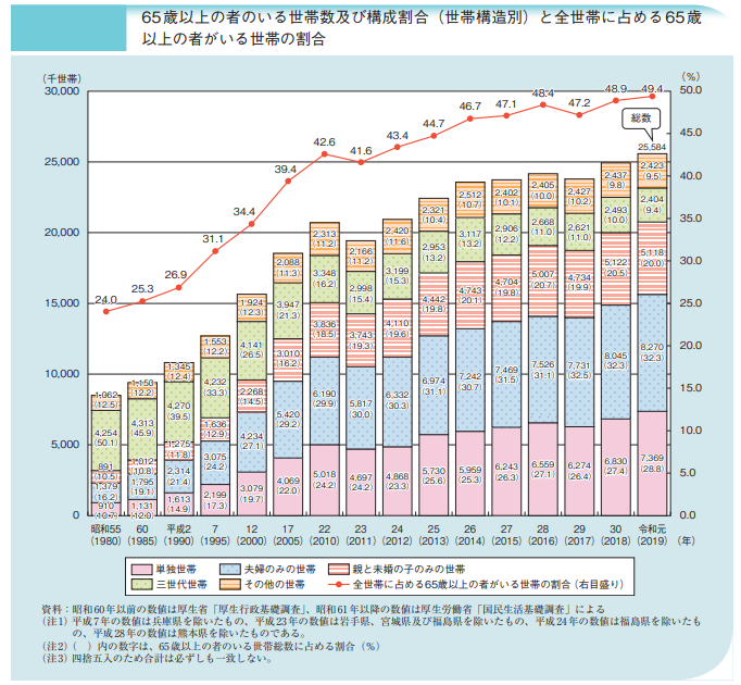 全国には65歳以上の者のいる世帯が2500万世帯もいます。