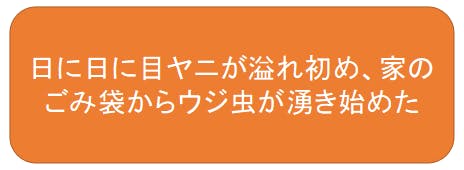 旦那様の目からは目ヤニが溢れていて、それを取り除こうとはしませんでした。入口付近のごみ袋にはウジ虫が湧いていました。