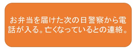 玄関先で座ったまま亡くなっていたということで、横にお弁当があったそうです。